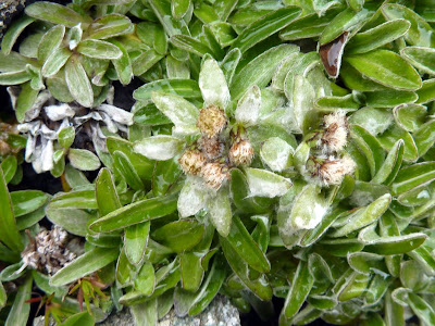 Données de l'observation: les photos ont été prises dans le parc national autrichien des Hohe Tauern début août 2011, lors d'une randonnée entre le lac de barrage et le glacier du Pasterzen. Deux plantes ont été observées. Sur les deux dernières photos (deuxième plante), on constate que la plante n'a presque pas produit de tiges. La plante s'est installée au creux d'un nid de pierres dans un endroit exposé au vent, et se protège en ne produisant qu'une courte tige.