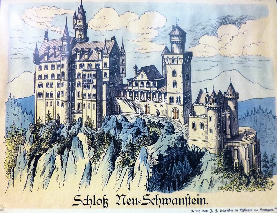 Deckblatt zum Modellbaubogen Schloß Neuschwanstein der Firma J. F. Schreiber in Esslingen, 1887/92